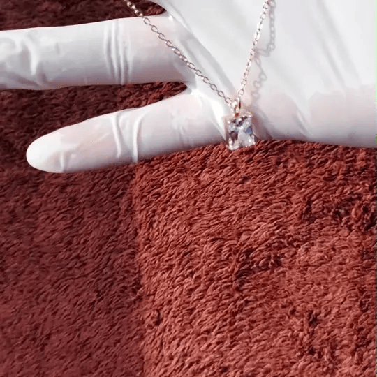 Elegant Square-Cut Solitaire Pendant Necklace – Gold-Tone Chain with Crystal Charm